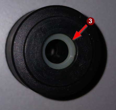 Trek de stoomknop lichtjes omhoog. Als deze zonder enige weerstand los komt dan is de stoomknop niet goed gemonteerd of de seal ring (3) is versleten. Deze ring hoort er uit te zien als hieronder (3). Als deze beschadigt of versleten is dan kunnen wij een nieuwe leveren. U mag de foto naar ons mailen ter controle.