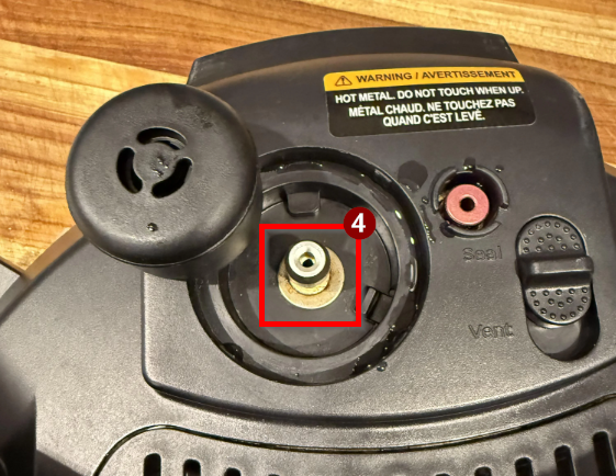 Stap 1: zorg dat uw Instant Pot stoomschakelaar (1) in "Steal" (gesloten) stand staat, anders zal de stoomknop stoom door laten en komt de Instant Pot nooit op druk.